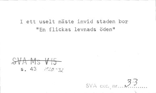 //// I ett uselt näste invid staden bor "En flickas levnads öden" //// £VA Mb t -- //// s. 43 //// SVA ccc. nr. 3. 1. ////