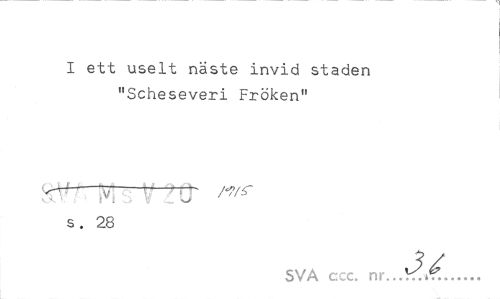 //// I ett uselt näste invid staden "Scheseveri Fröken" //// s. 28 //// SVA ccc. ... ////