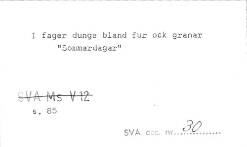//// I fager dunge bland fur ock granar "Sommardagar" //// Vt t //// s. 85 //// 30 //// SVA ccc. nr...Wx:... ////