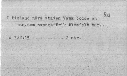 //// 8 ss //// I Finland nära staden Vasa bodde en ~ man,som namnet Erik Blömfelt bar... //// A 322:15 --- 2 str. ////