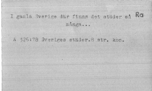 //// I gamla Sverige där finns det städer så //// många... //// | A 326:78 Sveriges städer.8 str. kom. //// | ////