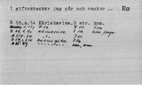 //// 1 giftastankar jag går och vankar .. Ra B 68,s,54 Kärleksvlsa.8 str. kora,. //// Stmmåm S'. 'Jy V' S4.. 7 2c<r>*. //// 0 S'7 . - * - 79/>- //// 2 b S M ö<* * fy //// ... - ////