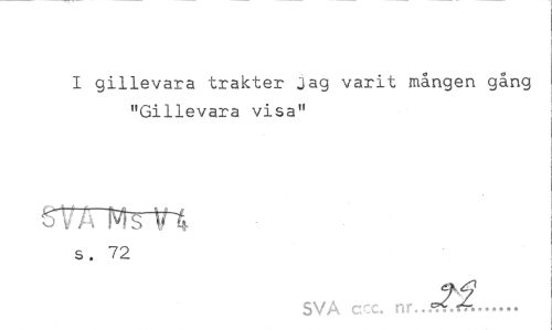 //// I gillevara trakter Jag varit mången gång "Gillevara visa" //// ^TTTWm //// s. 72 //// SVA ccc. nr..5?v.ifr... ////