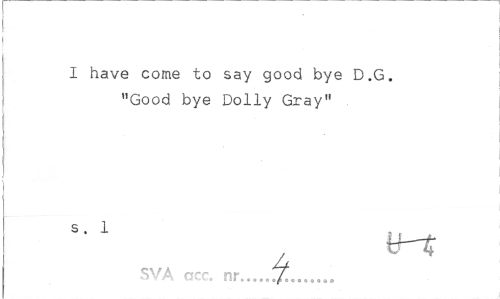 //// I have come to say good bye D.G. "Good bye Dolly Gray" //// I //// s. 1 //// y-t //// SVA acc. nr... ////