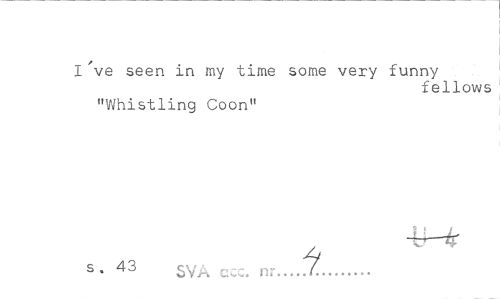 //// I 've seen in my time some very funny //// fellows //// "Whistling Coon" //// s. 43 syA CCCi ... ////