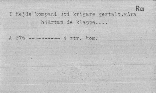 //// Ra //// X Hejde kompani uti krigare gestalt,våra hjärtan de klapoa... //// A ?7n —---4 str. kom. ////