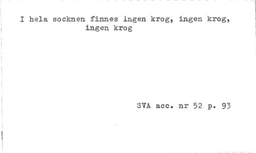 //// I hela socknen finnes ingen krog, ingen krog, ingen krog //// SVA acc. nr 52 p. 93 ////