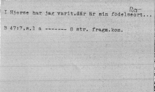 //// Ra //// I Hierse har .lag varit.där är min födelseort... B 47?7,s.l a---8 str. fragm.kom. ////