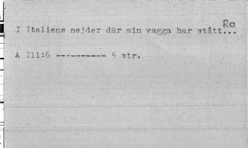 //// ijpd //// I Italiens nejder där min vagga har stått.'.. . A 211:6---5 str. ////