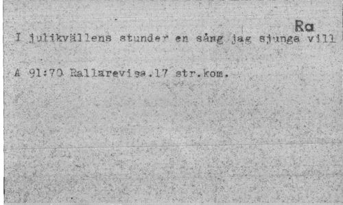 //// Ra //// I .Hulikväl le.ns stund*1* en sång jag sjunga vill A 91:70 Iiallarevisa.17 str.kom. ////