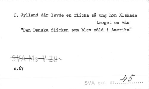//// I, Jylland där levde en flicka så ung hon Älskade //// troget en vän //// "Den Danska flickan som blev såld i Amerika" s.67 //// SVA : nr.. ////