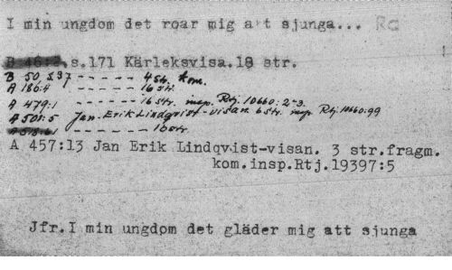 //// I min ungdom det roar mig a t sjunga... . .-;.; //// t //// s> 171 Kärleksvisa. 1© str. //// 3 sv, 13?...ifoH, //// /} '---*At • //// ffi/ir 7*» - JtywKtf ^ucyix- ___ //// A 457:13 Jan Erik Lindqvist-visan. 3 str.fragm. //// kom.insp.Rtj.19397:5 //// Jfr.I min ungdpm det gläder mig att sjunga ////