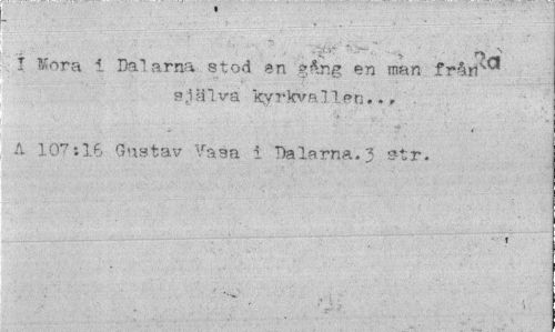 //// - 1 • - " //// I Kora i Dalarna stod en gång en man frårtVM s.Uilva kyrkvallen... //// r" < //// A 107:16 Gustav Vasa i Dalarna.5 stT. //// i ////