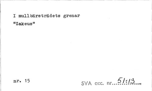 //// I mullbärsträdets grenar //// "Zakeus" //// nr' 15 SVA cscc. nr ////