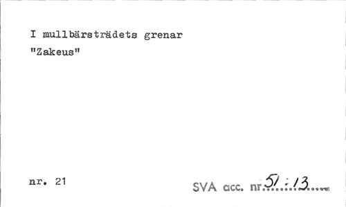 //// I mullbärsträdets grenar //// "Zakeus" //// nr' 21 SVA cscc. nr ////