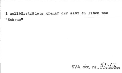 //// I mullbärsträdets grenar där satt en liten man "Sakeus" //// SVA cec. ////