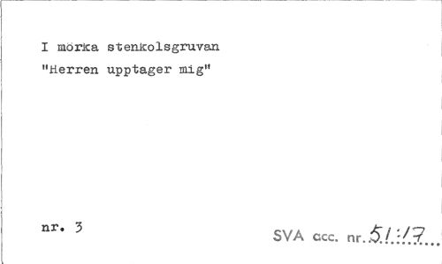 //// I morica stenkolsgruvan "Herren upptager mig" //// nr* 5 SVA ccc, nr.,S./.:/.?.., ////
