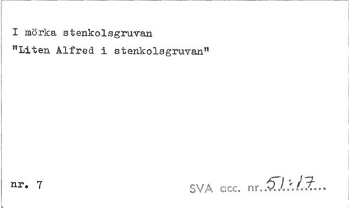 //// I mörka stenkolsgruvan "Liten Alfred i stenkolsgruvan" //// nr. 7 SVA ccc. nr..'57././.?... ////