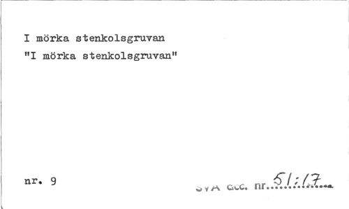 //// I mörka stenkolsgruvan "I mörka stenkolsgruvan" //// nr* 9 ^ ^ r nr ' //// sår... ////