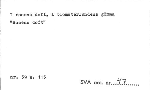 //// I rosens doft, i blomsterlundens gömma "Rosens doft" //// nr. 59 s. 115 //// SVA occ. nr. .Si... ////