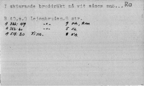 //// I skimrande "bruddräkt så vit såsom snö.. * ^Q //// B 40,3,9 Teionbrud^r.Q str, <? 3U: Vf - f //// <9 S/g: Xo T/ fa. 9 s'4 ////