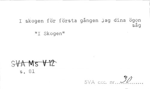 //// I skogen för första gången jag dina ögon //// såg //// "I Skogen" //// Ht //// s. 81 //// SVA ccc. nr. ////