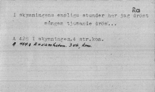 //// fvO //// I skymningens ensliga stunder har (iag drömt mången tjusande dröm"».. //// A 4 26 I skymningen.4 str.kom. //// / ////