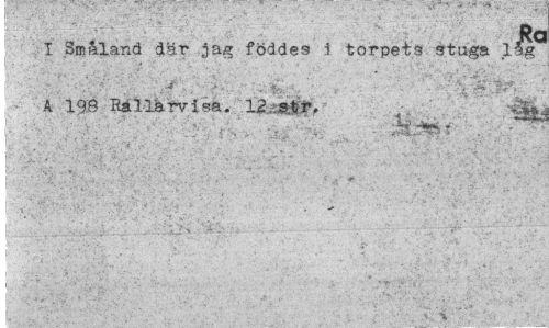 //// Ro //// I Småland där jag föddes i torpets stuga låg //// A 198 Bil lä tv i sä. 12jsaJÉr, llfe //// i- . ¦ ¥ " //// • ... * " 5" ' • < '. ' - . ¦ » //// ]-¦ -' Z -'^-. ;>vVJ; > 5 •• xi^C "* .: . ' ••;¦- -yi;. ////