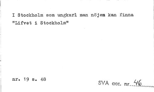 //// I Stockholm som ungkarl man nöjen kan rinna "Lifvet i Stockholm" //// nr. 19 s. 48 , //// SVA ccc. nr...7.fc... ////