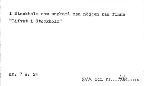 //// I Stockholm som ungkarl man nöjjen kan finna "Lifvet i Stockholm" //// j nr. Is. 24 )if //// SVA ccc. ////