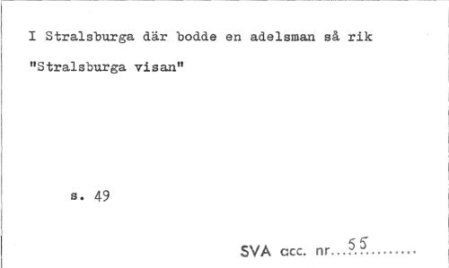 //// I Stralsburga dar "bodde en adelsman så rik "Stralsburga visan" //// s. 49 //// SVA ccc. nr...?.?... ////