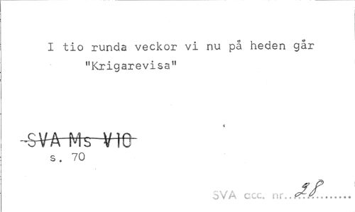 //// I tio runda veckor vi nu på heden går "Krigarevisa" //// -SVA Mb V10 //// s. 70 //// SVA ccc. nr...!0!?.:.^... ////