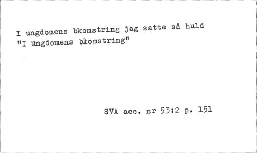 //// I ungdomens bkomstring jag satte så huld "I ungdomens blomstring" //// ! //// SVA acc. nr 53:2 p. 151 ////