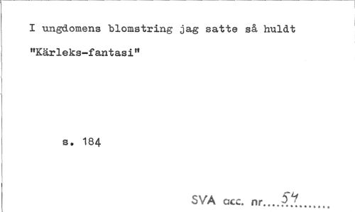 //// I ungdomens blomstring jag satte så huldt "Kärleks-fantasi" //// i //// s. 184 //// SVA ccc. nr...A... ////