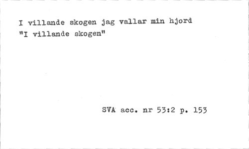 //// I villande skogen jag vallar min hjord "I villande skogen" //// SVA acc. nr 53:2 p. 153 ////