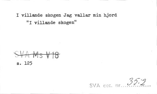 //// I villande skogen Jag vallar min hjord "I villande skogen" //// sWt Ms V ?8 //// s. 125 //// SVA ccc. ////
