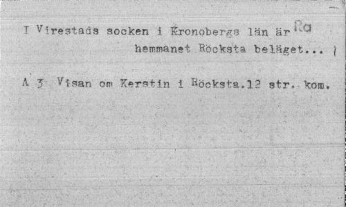 //// I V-trestads socken i Kronobergs län är" //// hemmanet Böcksta beläget... j //// A 5 Vtaan om Kerstin i Röcksta.l? str, kom. ////