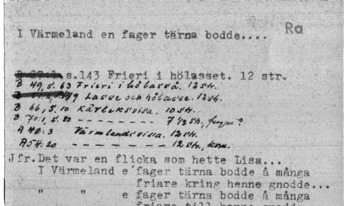 //// I Värmeland en fager tärna bodde... //// 0 imil»g.143 Frieri i hölasset. 12 str. 3 H") s'. /¦ AJtaftfol, /Zs-i^r. //// ^^iHBtffWf J X-a-s'6't- ^Väsvi.• /Z¦ //// 9 S'. to---7 '/tfri. fZ*^ * //// Q . 3 Sas**,'. /2tfM Za---— —-- //// Jfr.Det var en flicka som hette Lisa... //// T Värmeland e'fager tärna bodde å många //// friare kring henne gnodde... " ,f e fager tärna bodde å många ////