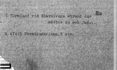 //// * ' * ' "111 < * ~ * tr- -rp AI //// I Värmland vid Klarälvens strand där « /> //// mettes du och //// ... ¦; ¦ • ::¦• - - ; ¦> ? • //// - ¦ ¦ v v.v* //// A 472:1 Varmluiösvisan.5 str. //// "" -r ¦-¦'¦v y ' . ' //// ; //// i'- ¦ ////