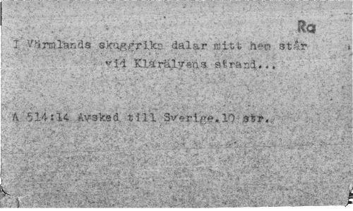 //// - a?® ¦ ' //// I Värmlands skqggrikD dalar mitt .hem står * //// • - vid Klarälvens strand.., //// :'<'¦-'¦ j../' «•,' :." - ¦ **: -'O V ,•:.,,^ . v '. //// < . ¦*' .".. j . ' ~ . " '" . . -v ., .. . ".' * ¦¦v-, ¦¦ -. . ' . ' ' ¦ ¦ .' . ' ''.. ; . " //// - ¦¦ * - - ; * v*>V- . j . • , . ' '' ¦¦ " //// - - . . ' . ' " : ';, , - //// A 51414 Avsked till Sv^ri^e. 10 str, //// ' V-?" o - //// , ; ' i- ¦ 'si. -^fC'*'» : M //// t-. Yi'' ¦ v- ¦i-.f.-y-* 'r. ¦ ¦¦ - ' ¦ .¦•• -.vr-A,-./ ¦ ¦ . //// ' . , ' ' . • • - « .. r //// ^ . . - ////