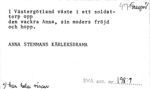 //// I Västergötland växte i ett soldattorp opp //// den vackra Anna, sin moders fröjd och hopp. //// ANNA STENMANS KÄRLEKSDRAMA //// . . , r SVA ccc. nr..M?:1... //// * "rvrih. ru>ls,, in^/iiiyu ////