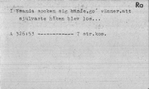 //// Ro //// f Ysanda socken sig htinde, go' vänner,att självaste h^ken blev lös... //// A 326:53 --- 7 str.kom. ////