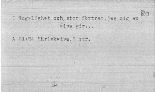 //// Ra //// I ängslighet och. stor förtretjag mig en visa för.., //// ¦ //// A 91:84 KärleVvisa.' str, //// i //// ... .* //// t ////