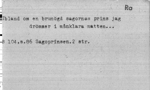 //// i Ra //// jlbland om en brunögd sagornas prins jag drömmer i månklara natten... //// ¦ //// -B 104,3.86 Sagoprinsen.2 str. //// ii ////