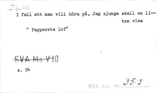 //// I fall att man vill höra på, Jag sjunga skall en liten visa //// " Papperets lof" //// s. //// SVA rrr nr ////