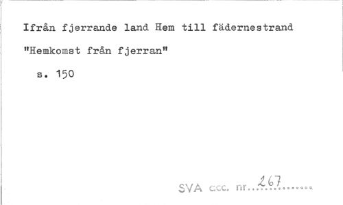 //// Ifrån fjerrande land Hem till fädernestrand "Hemkomst från fjerran" s. 150 //// Kel //// SVA ccc. nr. ////