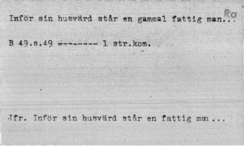 //// - - . : a% //// Sf f| //// Inför sin husvärd står en gammal fattig man./. B 49,s.4-9 ---1 str.kom. //// •Tfr. Inför sin husvärd står en fattig man . .. ////