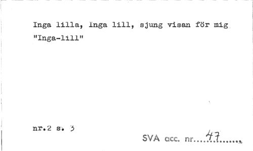 //// Inga lilla, Inga lill, sjung visan för mig "Inga-lill" //// nr. 2 s. t> //// SVA ccc. nr...7.1,... ////