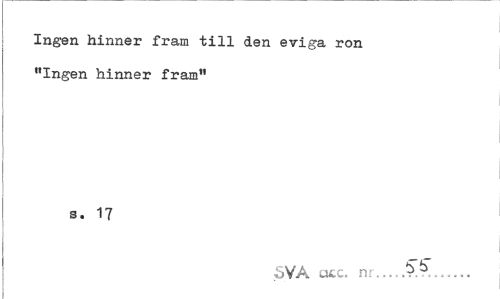 //// Ingen hinner fram till den eviga ron "Ingen hinner fram" //// s. 17 //// SVA ute. nr... ////