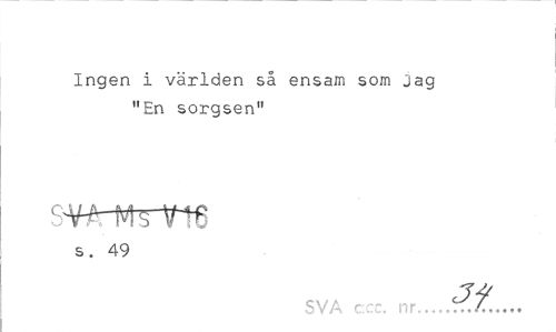 //// Ingen i världen så ensam som jag "En sorgsen" //// s. 49 //// SVA c..-, nr... ////